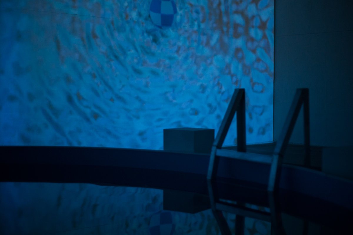 Duende is a 15ft above-ground pool engineered into a large-scale oscillator that continuously activates harmonic standing waves and nodes within the site. The pool was accompanied by a series of ensemble vocal improvisations, and a 90ft x 20ft four-channel video installation. Commissioned by the Icebox Project Space for their Sound Residency Series.